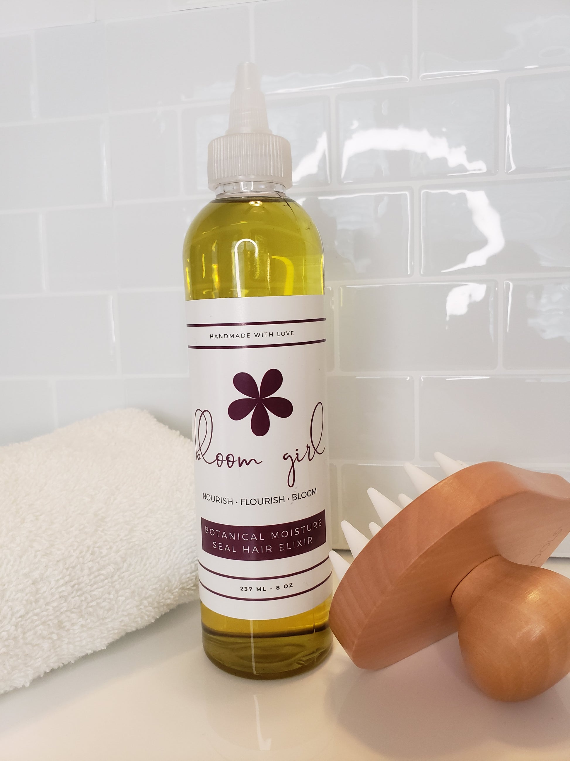Our Signature Botanical Moisture Seal Hair Elixir is 100% organic & is infused with botanical herbs geared towards strengthening, revitalizing, locking in moisture & promote the growth of HEALTHY HAIR!